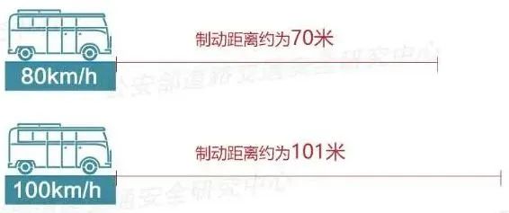 数据显示,在干燥水平路面上,时速为80公里时,制动距离约为70米;时速为100公里时,制动距离达到101米;而时速为140公里时,制动距离达到173米!当前车遇到紧急情况刹车时,同车道后车如超速行驶,则极易发生追尾事故。