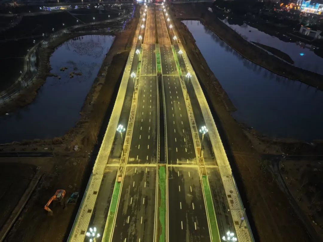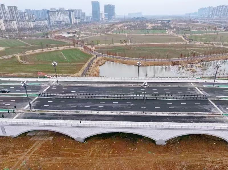灯塔路桥为上跨肥西派园园区南北休闲步道和园区内南北向水系连通明渠的景观桥梁,桥梁结构设计为三孔不等跨上承式钢筋混凝土拱桥,桥全长约80米,宽45米。此次关键节点灯塔路跨桥建成,标志着灯塔路实现全线贯通,更加方便沿线群众的出行需求。