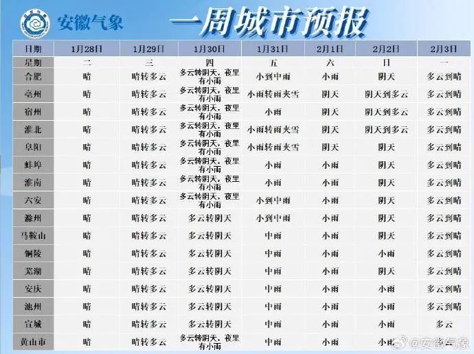 据安徽气象台最新预报