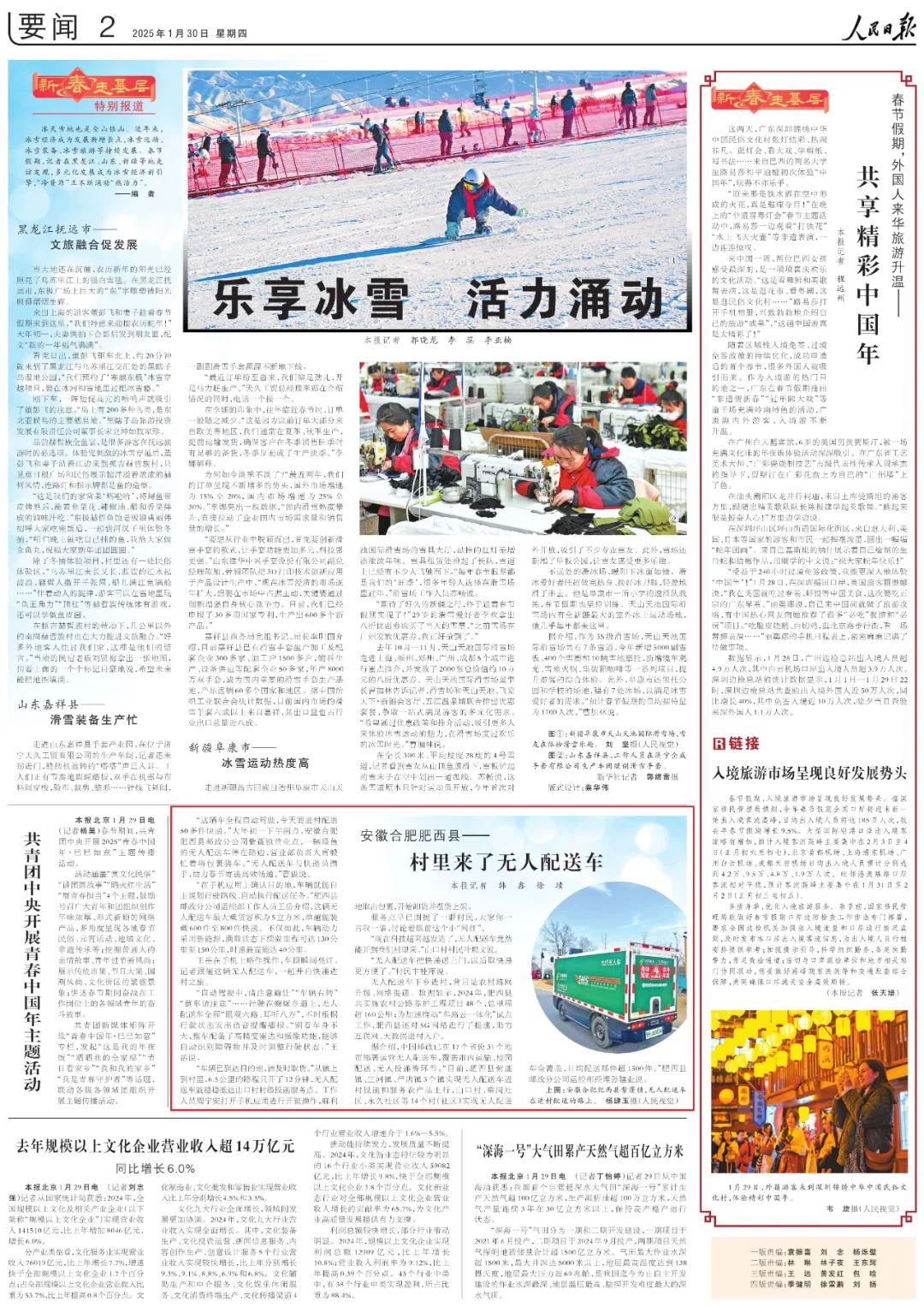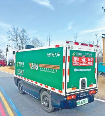 “这辆车全程自动驾驶,今天要进村配送50多件快递。”大年初一下午两点,安徽合肥肥西县邮政分公司紫蓬镇营业点,一辆绿色的无人配送车停在路边,营业部负责人曹毅忙着将包裹装车。“无人配送车与快递员携手,助力春节寄递高效畅通。”曹毅说。