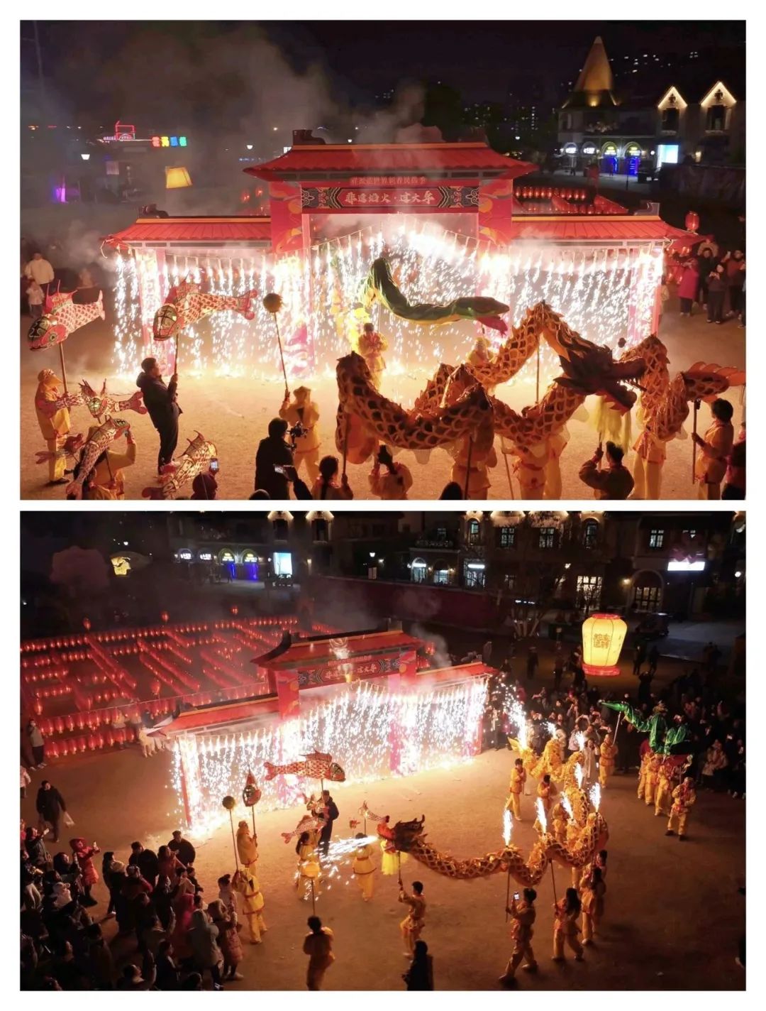 孩童的欢笑、响亮的锣鼓、烟火的轰鸣交织成一幅热闹非凡的迎春画卷。