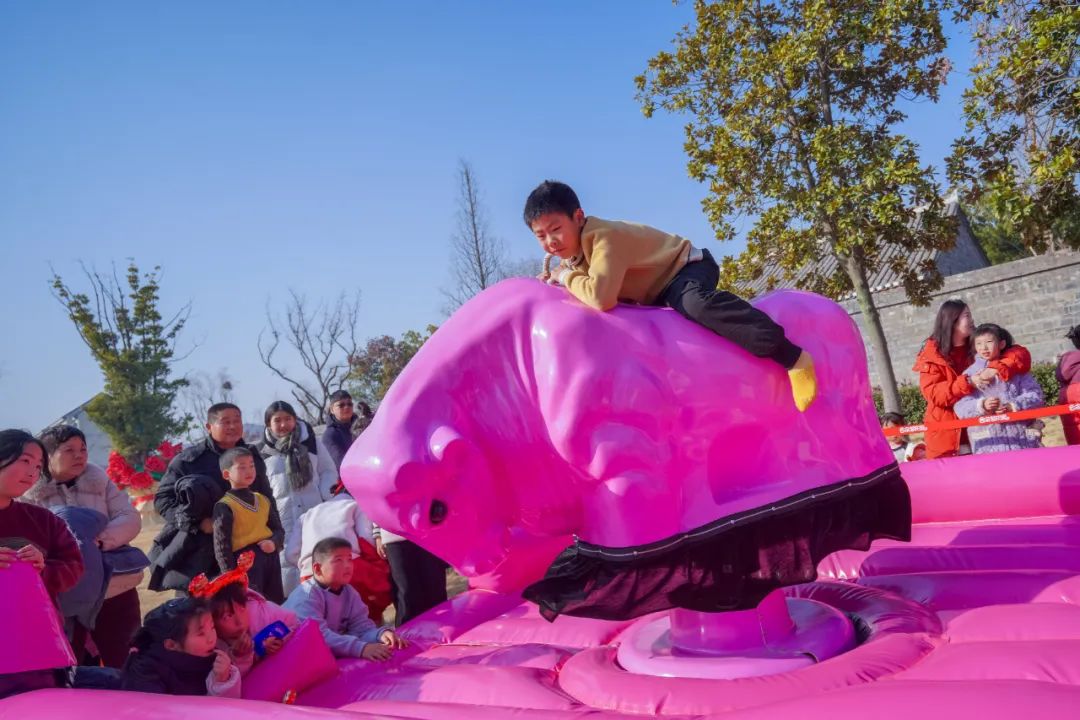 梦回童年经典游戏,激情挑战疯狂斗牛机。曾经火热一个时代的游戏在云朵梦庄园热闹回归,瞬间激起现场游客的挑战欲,争先恐后参与其中。随着斗牛机的疯狂摇摆,现场游客纷纷跟着节奏激动起来,这一刻所有烦恼全都烟消云散。