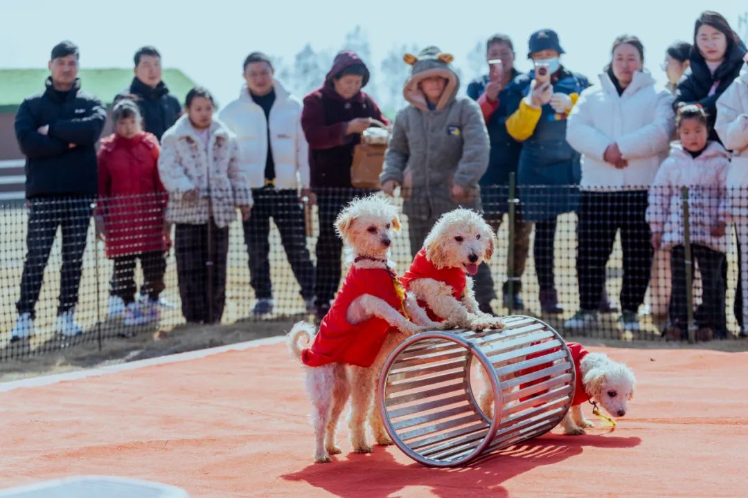 萌宠表演喜迎新年,亲子互动欢乐体验。精彩纷呈的萌宠表演让现场游客大开眼界,泰迪表演、羊驼拉车、斗鸡竞技等轮番上演,游客们跟随萌宠的表演动作激情欢呼,大小朋友们兴奋不已,为游园会增添无限童趣,也让游客近距离感受萌宠魅力。